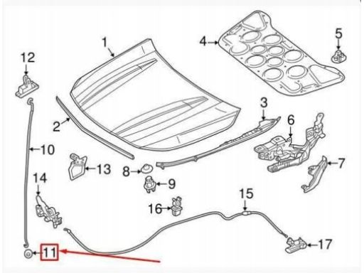 Cięgno linka zamka maski A2228800059 Mercedes W222