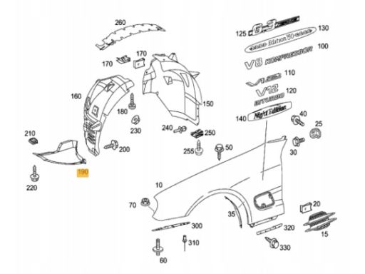 Nadkole osłona do Mercedes W230 SL class.Dostępna lewa oraz prawa strona , po zakupie proszę podać którą mamy wysłać.Nr lewy : A2306901930,Nr prawy : A2306902030,stan : Nowy - oryginał MercedesCena za szt.Dobieramy części pod nr VIN