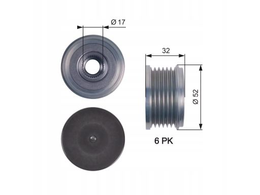 KOŁO PASOWE ALTERNATORA PASUJE DO: CITROEN BERLINGO, BERLINGO MULTISPACE, BERLINGO/MINIVAN, C2, C3 I, C3 PICASSO, C3 PLURIEL, C4, C4 GRAND PICASSO I, C4 I, C4 II, C4 PICASSO I 1.4D-2.2D 06.96-