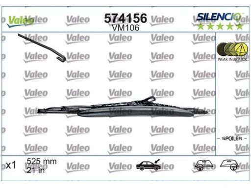 PIÓRO WYCIERACZKI PRZEGUBOWE PRZÓD ZE SPOJLEREM (1SZT.) VM106 SILENCIO 525MM PASUJE DO: VOLVO 850, C70 I, S40 I, S70, V40, V70 I, AUDI A3, A4 B5, BMW 3 (E36), FIAT COUPE, FORD MONDEO I 02.88-