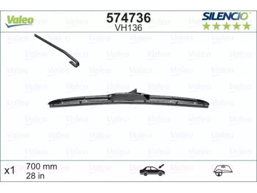 PIÓRO WYCIERACZKI HYBRYDOWE PRZÓD ZE SPOJLEREM (1SZT.) VH136 SILENCIO HYBRID 700MM PASUJE DO: CITROEN C-ZERO, MITSUBISHI I, PEUGEOT EXPERT, ION, SUBARU TREZIA, SUZUKI SWACE, TOYOTA COROLLA 01.07-