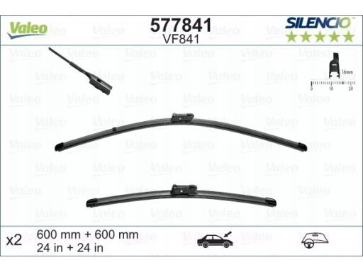 PIÓRO WYCIERACZKI BEZPRZEGUBOWE PRZÓD ZE SPOJLEREM (2SZT.) VF841 SILENCIO 600MM PASUJE DO: VW AMAROK, CALIFORNIA T6 CAMPER, MULTIVAN T5, MULTIVAN T6, TRANSPORTER T5, TRANSPORTER T6 11.03-