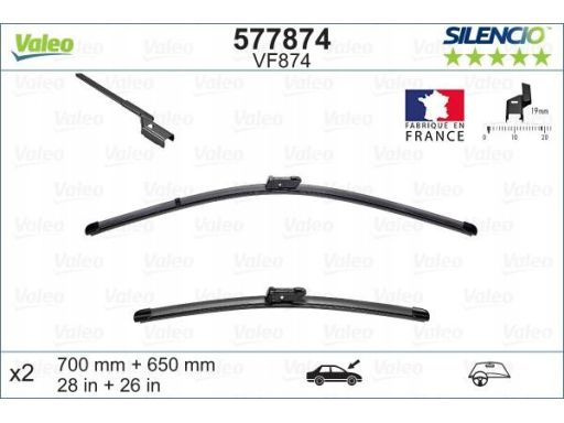 PIÓRO WYCIERACZKI BEZPRZEGUBOWE PRZÓD ZE SPOJLEREM (2SZT.) VF874 SILENCIO XTRM 700/650MM PASUJE DO: OPEL AMPERA-E, ASTRA J GTC, ASTRA K, ASTRA K/KOMBI, CASCADA 10.11-