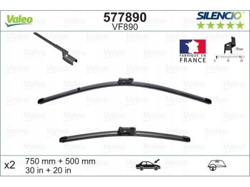 PIÓRO WYCIERACZKI BEZPRZEGUBOWE PRZÓD ZE SPOJLEREM (2SZT.) VF890 SILENCIO XTRM 750/500MM PASUJE DO: FORD TRANSIT V363 08.13-