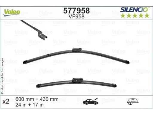 PIÓRO WYCIERACZKI BEZPRZEGUBOWE PRZÓD ZE SPOJLEREM (2SZT.) SILENCIO 600/430MM PASUJE DO: CITROEN BERLINGO, BERLINGO/MINIVAN, FIAT DOBLO, DOBLO/MINIVAN, OPEL COMBO E TOUR / LIFE, COMBO/MINIVAN 02.16-