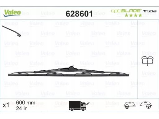PIÓRO WYCIERACZKI SZKIELETOWE PRZÓD (1SZT.) OPTIBLADE 600MM PASUJE DO: IVECO DAILY III, DAILY IV, DAILY V, RVI MASCOTT, MIDLUM, NISSAN INTERSTAR, OPEL MOVANO A, RENAULT MASTER II, DAF LF 07.98-