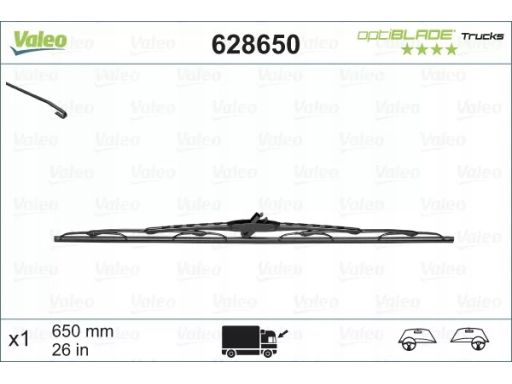 PIÓRO WYCIERACZKI SZKIELETOWE PRZÓD (1SZT.) OPTIBLADE 650MM PASUJE DO: IVECO DAILY IV, EUROCARGO I-III, EUROCARGO V, EUROSTAR, EUROTECH MH, EUROTECH MP, EUROTECH MT, EUROTRAKKER, MAGIRUS 01.80-