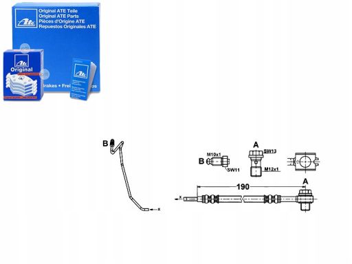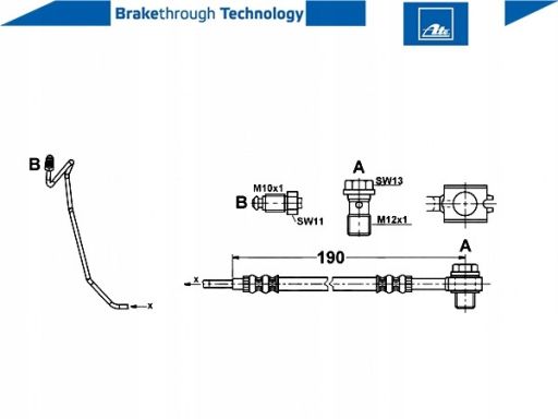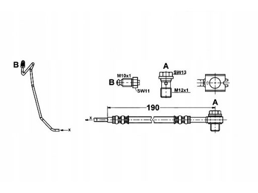PRZEWÓD HAMULCOWY ELASTYCZNY TYŁ P (DŁ. 190MM, M12X1/M10X1) PASUJE DO: AUDI A6 C5, SKODA SUPERB I, VW PASSAT B5, PASSAT B5.5 1.6-3.7 08.96-03.08