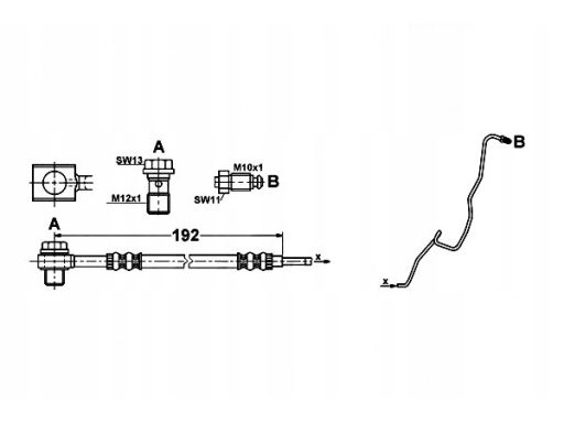 PRZEWÓD HAMULCOWY ELASTYCZNY TYŁ L (DŁ. 192MM, M12X1/M10X1) PASUJE DO: SEAT CORDOBA, IBIZA III, SKODA FABIA I, FABIA I PRAKTIK, FABIA II, FABIA II PRAKTIK, VW POLO, POLO IV 1.0-2.0 12.95-