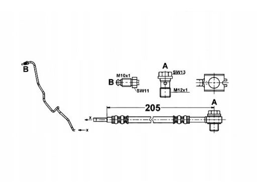 PRZEWÓD HAMULCOWY ELASTYCZNY TYŁ L (DŁ. 202,2MM, M10X1) PASUJE DO: AUDI A1, SEAT IBIZA IV, IBIZA IV SC, IBIZA IV ST, IBIZA IV/HATCHBACK, VW POLO, POLO V, POLO VIVO 1.0-2.0D 03.08-05.22