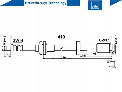 PRZEWÓD HAMULCOWY ELASTYCZNY PRZÓD L/P (DŁ. 410MM, M10X1) PASUJE DO: ALFA ROMEO GIULIETTA, GIULIETTA/HATCHBACK 1.4-2.0D 04.10-12.20