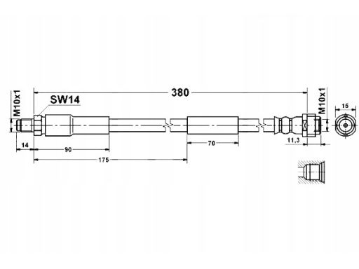 PRZEWÓD HAMULCOWY ELASTYCZNY PRZÓD L/P (DŁ. 380MM, M10X1/M10X1) PASUJE DO: MERCEDES CLS (C219), E T-MODEL (S211), E (VF211), E (W211), S (W220) 1.8-6.3 10.98-12.10