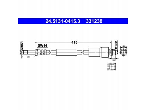 PRZEWÓD HAMULCOWY ELASTYCZNY TYŁ L/P (DŁ. 415MM, M10X1/M10X1) PASUJE DO: MERCEDES SPRINTER 4,6-T (B906), SPRINTER 5-T (B906), VW CRAFTER 30-35, CRAFTER 30-50 1.8-3.5 04.06-09.20