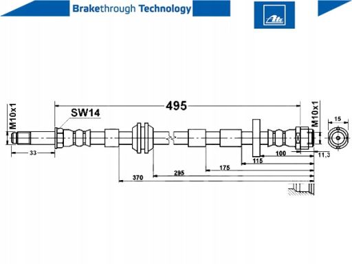PRZEWÓD HAMULCOWY ELASTYCZNY PRZÓD L/P (DŁ. 495MM,ŚR. 15MM, M10X1/M10X1) PASUJE DO: AUDI A8 D4 2.0-6.3 11.09-01.18