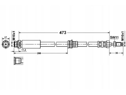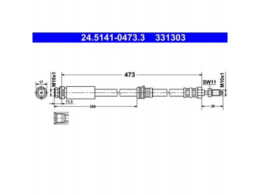 PRZEWÓD HAMULCOWY ELASTYCZNY PRZÓD L/P (DŁ. 473MM, M10X1/M10X1) PASUJE DO: FORD FIESTA, FIESTA V, MAZDA 2 1.0-2.0 11.01-11.13