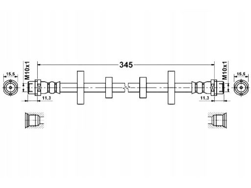 PRZEWÓD HAMULCOWY ELASTYCZNY PRZÓD L/P (DŁ. 345MM, M10X1/M10X1) PASUJE DO: VW TRANSPORTER T4 1.9D-2.8 07.90-06.03