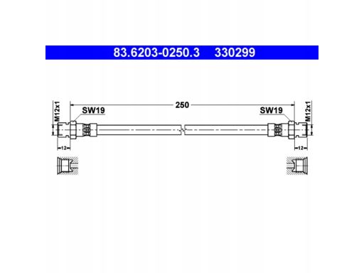 PRZEWÓD HAMULCOWY ELASTYCZNY (DŁ. 250MM, M12X1) PASUJE DO: MERCEDES UNIMOG, 1000, 60, 70, 700, 800, 900 2.2-6.0D 01.55-