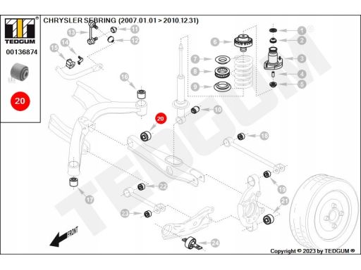 SILENTBLOCK DRĄŻKA REAKCYJNEGO TYŁ L/P PASUJE DO: CHRYSLER SEBRING 2.0/2.0D/2.4 07.07-12.10