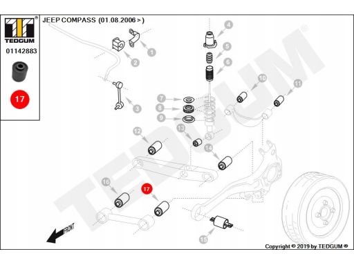 SILENTBLOCK DRĄŻKA REAKCYJNEGO TYŁ L/P PASUJE DO: JEEP COMPASS, PATRIOT 2.0-2.4LPG 08.06-