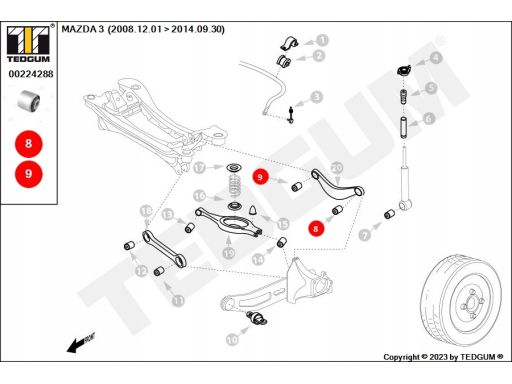 SILENTBLOCK WAHACZA TYŁ L/P (GÓRA TYŁ, WAHACZ POPRZECZNY) PASUJE DO: VOLVO C30, C70 II, S40 II, S60 II, S80 II, V40, V50, V60 I, V70 III, XC60 I, XC70 II, FORD C-MAX, C-MAX II 1.0-ELECTRIC 10.98-02.20