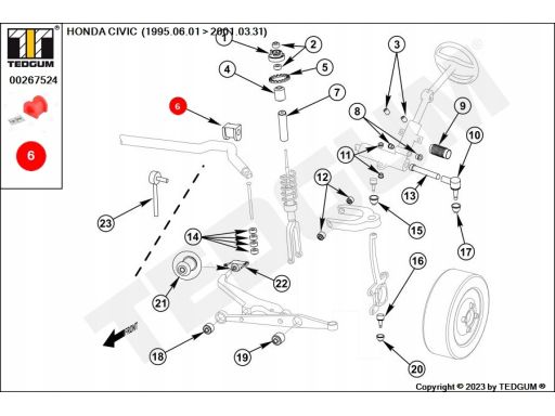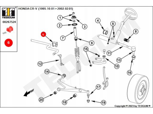 POLIURETANOWA TULEJA STABILIZATORA, 1SZT., STABILIZATOR PRZÓD, L/P, WEWNĄTRZ, TWARDOŚĆ: 80 SHA, , PASUJE DO: HONDA CIVIC VI, CR-V I 1.4-2.0 10.95-02.02