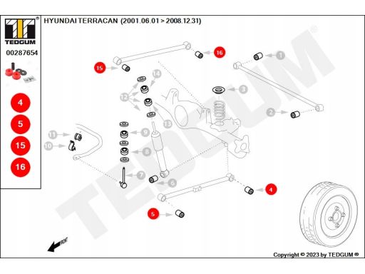 POLIURETANOWA TULEJA WAHACZA TYLNEGO WZDŁUŻNEGO (1SZT., L/P, PRZÓD/TYŁ, TWARDOŚĆ: 80 SHA, ŚR. ZEW. 51MM) PASUJE DO: HYUNDAI PASUJE DO: HYUNDAI TERRACAN 11.01-12.06