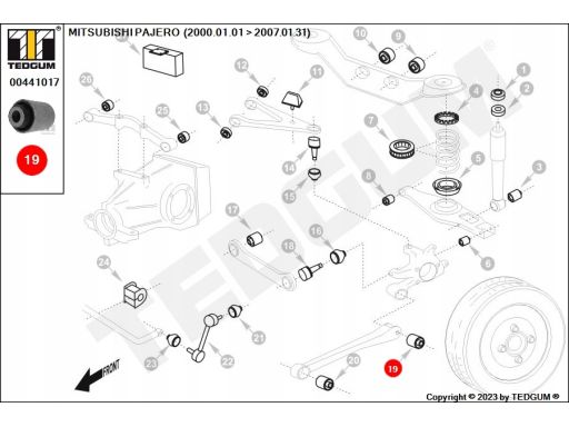 SILENTBLOCK WAHACZA TYŁ L/P (ZEWNĄTRZ TYŁ/Z TYŁU) PASUJE DO: MITSUBISHI PAJERO III 2.5D/3.2D/3.5 04.00-01.07