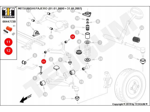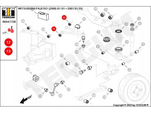 POLIURETANOWA TULEJA, 1SZT., WAHACZ TYŁ GÓRA, L/P, PRZÓD/TYŁ, TWARDOŚĆ: 80 SHA, , PASUJE DO: MITSUBISHI PAJERO III 2.5D/3.2D/3.5 04.00-01.07