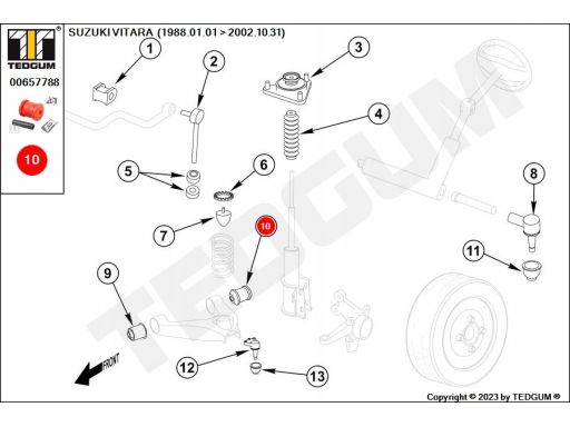 TULEJE ZAWIESZENIA L/P, 2SZT., MIEJSCE ZABUDOWY: PRZÓD, WAHACZ, Z TYŁU, TWARDOŚĆ: 70 SHA PASUJE DO: SUZUKI VITARA 1.6-2.0D 07.88-03.99