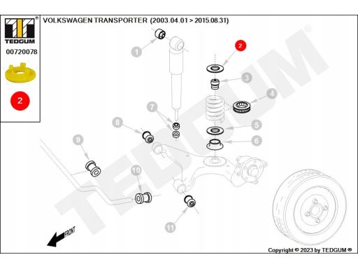 POLIURETANOWA PODKŁADKA SPRĘŻYNY, 1SZT., SPRĘŻYNA TYŁ, L/P, GÓRA, TWARDOŚĆ: 90 SHA, , PASUJE DO: VW MULTIVAN T5, TRANSPORTER T5 1.9D-3.2 04.03-08.15