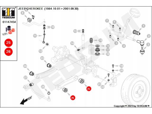 POLIURETANOWA TULEJA, 1SZT., WAHACZ PRZÓD DÓŁ/WAHACZ TYŁ DÓŁ, L/P, PRZÓD/TYŁ, TWARDOŚĆ: 80 SHA, NIE WYPRASOWYWAĆ TULEI ZEWN. Z GNIAZDA, PASUJE DO: JEEP CHEROKEE, GRAND CHEROKEE I 2.1D-5.9 10.84-