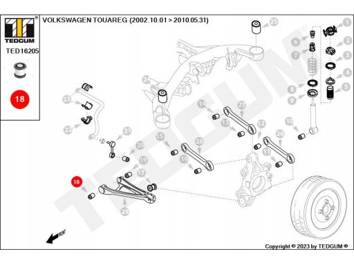SILENTBLOCK WAHACZA TYŁ L/P (DÓŁ TYŁ/Z PRZODU) PASUJE DO: AUDI Q7, PORSCHE CAYENNE, VW TOUAREG 2.5D-6.0D 09.02-08.15