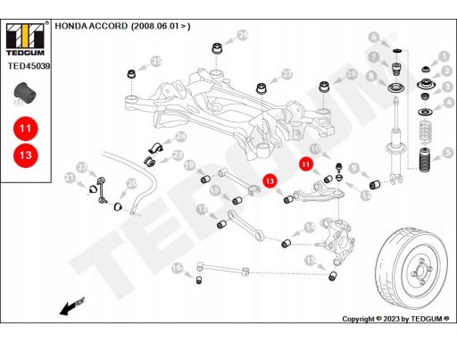 SILENTBLOCK WAHACZA TYŁ L/P (GÓRA TYŁ/Z PRZODU/Z TYŁU) PASUJE DO: HONDA ACCORD VIII 2.0/2.2D/2.4 06.08-