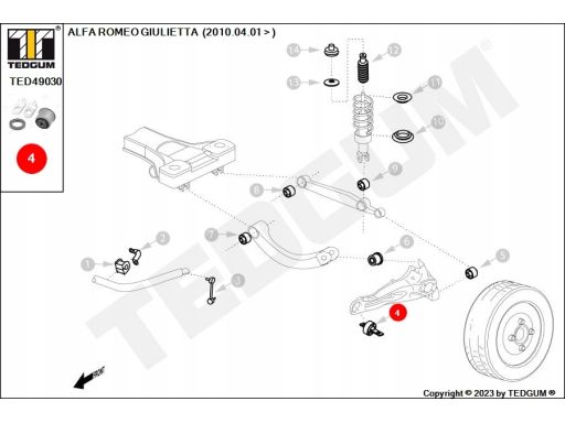 SILENTBLOCK WAHACZA TYŁ L/P (DÓŁ TYŁ/Z PRZODU) PASUJE DO: ALFA ROMEO GIULIETTA, GIULIETTA/HATCHBACK 1.4-2.0D 04.10-12.20