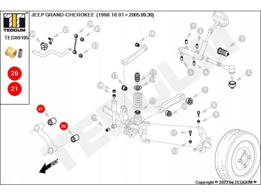 TULEJE ZAWIESZENIA L/P, 1SZT., MIEJSCE ZABUDOWY: PRZÓD/WEWNĄTRZ/ZEWNĄTRZ, DRĄŻEK PANHARDA, TWARDOŚĆ: 90 SHA PASUJE DO: JEEP GRAND CHEROKEE II 2.7D-4.7 10.98-09.05