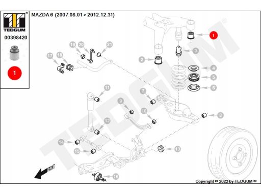 SILENTBLOCK BELKI ZAWIESZENIA TYŁ (Z TYŁU) L/P PASUJE DO: MAZDA 6 1.8-2.2D 08.07-07.13