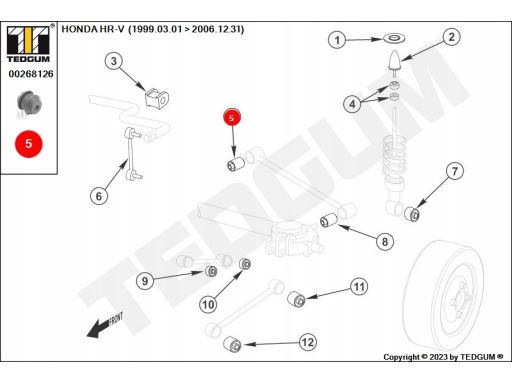 SILENTBLOCK WAHACZA TYŁ (WEWNĄTRZ TYŁ) PASUJE DO: HONDA HR-V, LOGO 1.3/1.6 03.99-