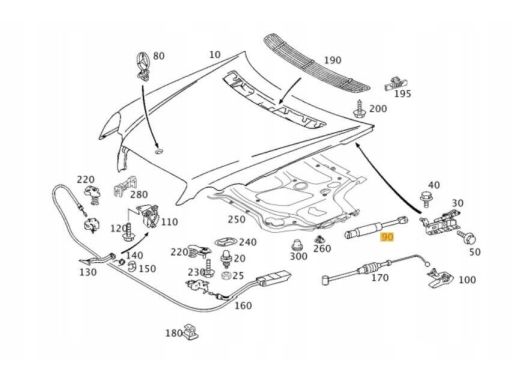 Siłownik maski do Mercedes W203 C class, W209 CLK class.Cena za szt.Nr : A2038800429stan : Nowy - oryginał MercedesDobieramy części pod nr VIN