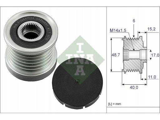 KOŁO PASOWE ALTERNATORA PASUJE DO: RENAULT ESPACE IV, VEL SATIS 3.0D 06.02-