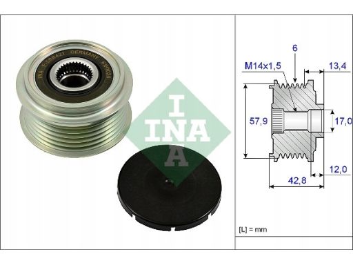 KOŁO PASOWE ALTERNATORA PASUJE DO: PORSCHE PANAMERA, SUBARU TREZIA, TOYOTA AURIS, COROLLA, URBAN CRUISER, VERSO S, YARIS 1.4D/3.0/3.0D 08.05-