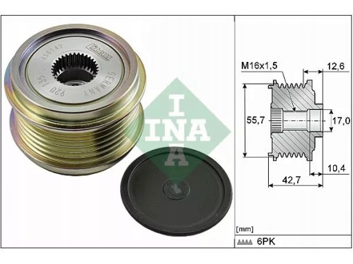 KOŁO PASOWE ALTERNATORA PASUJE DO: AUDI A4 ALLROAD B8, A4 ALLROAD B9, A4 B8, A4 B9, A5, A6 C7, A7, A8 D4, Q5, Q7, Q8, PORSCHE MACAN, VW TOUAREG 1.8-2.0H 10.07-