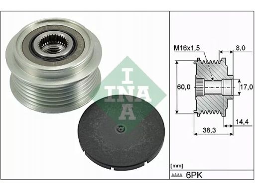 KOŁO PASOWE ALTERNATORA PASUJE DO: TOYOTA YARIS, YARIS/HATCHBACK 1.0 12.10-06.20