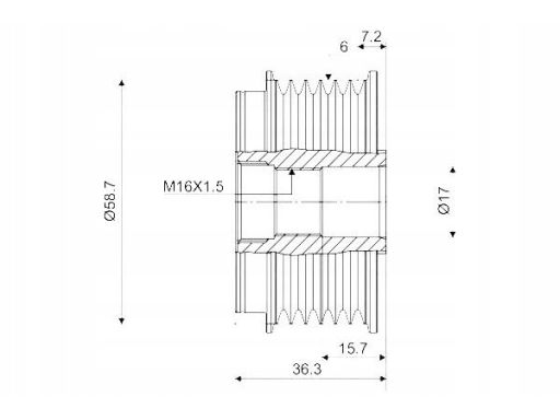 KOŁO PASOWE ALTERNATORA PASUJE DO: FORD C-MAX, FOCUS C-MAX, FOCUS I, FOCUS II, GALAXY II, MONDEO IV, S-MAX, TOURNEO CONNECT, TRANSIT CONNECT 1.8D 10.98-06.15