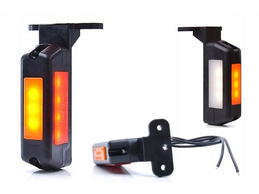 ŚWIATŁO OBRYSOWE L, BIAŁY/CZERWONY/POMARAŃCZOWY, LED, WYS. 105MM, SZER. 28MM, GŁ. 34MM, PODWIESZANA, DŁUGOŚĆ PRZEWODU 210MM, Z WIESZAKIEM, 12/24V (Z WIESZAKIEM KĄTOWYM)