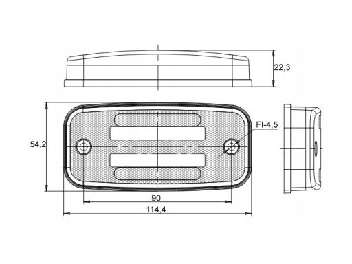 ŚWIATŁO OBRYSOWE, BIAŁY, LED, WYS. 54,2MM, SZER. 114,4MM, GŁ. 22,3MM, PODWIESZANA, Z WIESZAKIEM, 12/24V