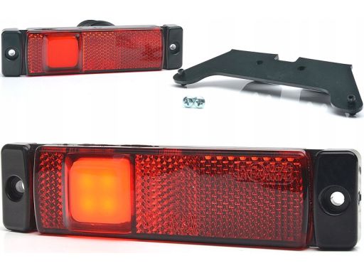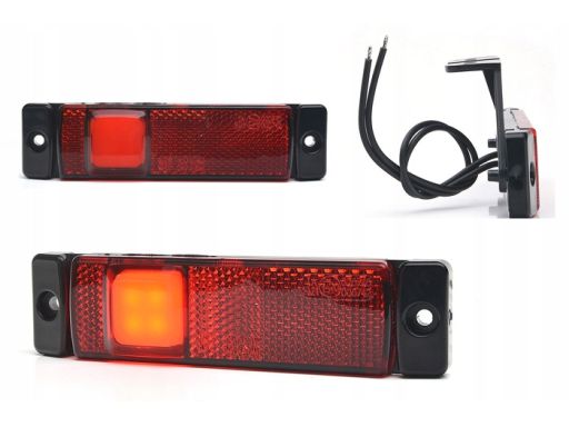 ŚWIATŁO OBRYSOWE L/P, SLIM, CZERWONY, LED, WYS. 32MM, SZER. 130MM, GŁ. 12,5MM, PODWIESZANA, DŁUGOŚĆ PRZEWODU 210MM, Z WIESZAKIEM, 12/24V (RODZAJ: NEON, SLIM)