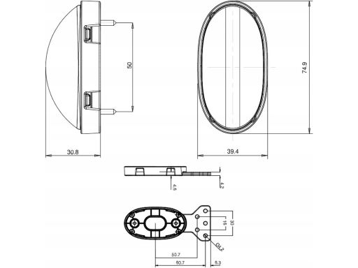 ŚWIATŁO OBRYSOWE L/P, KSZTAŁT: OWALNY, POMARAŃCZOWY, LED, WYS. 75MM, SZER. 39,5MM, GŁ. 31MM, PODWIESZANA, DŁUGOŚĆ PRZEWODU 380MM, Z WIESZAKIEM, 12/24V (RODZAJ: NEON, IP6K9K)