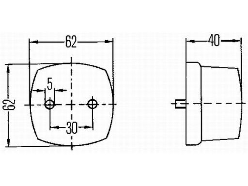 ŚWIATŁO OBRYSOWE L/P, BIAŁY/CZERWONY, C5W/HALOGEN, WYS. 62MM, SZER. 62MM, GŁ. 40MM, 12/24V
