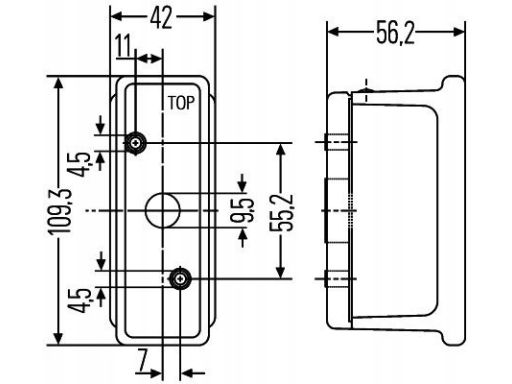 ŚWIATŁO OBRYSOWE P, ŻÓŁTY, HALOGEN/R10W, WYS. 42MM, SZER. 109MM, GŁ. 56,2MM, PRZYKRĘCANE, 12/24V (BEZ ŻARÓWKI)