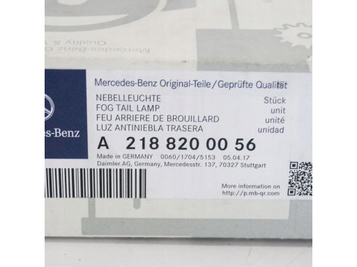 Lampa przeciwmgielna w zderzak do Mercedes W218 CLSNr : A2188200056stan : Nowy - oryginał MercedesDobieramy części pod nr VIN